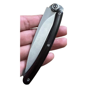 Námi vyvinutý designový kapesní nůž. I ve složeném stavu je plně vidět čepel nože, na kterou provádíme gravírování. Je opatřen klipsem pro uchycení na opasek. Střenka nože je vyrobena z ušlechtilého tmavého dřeva