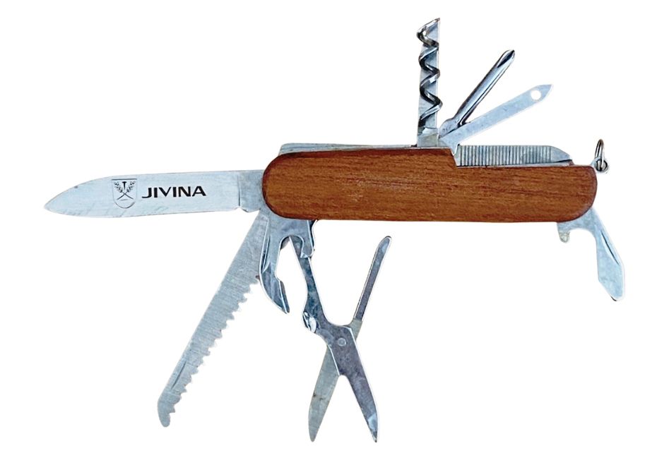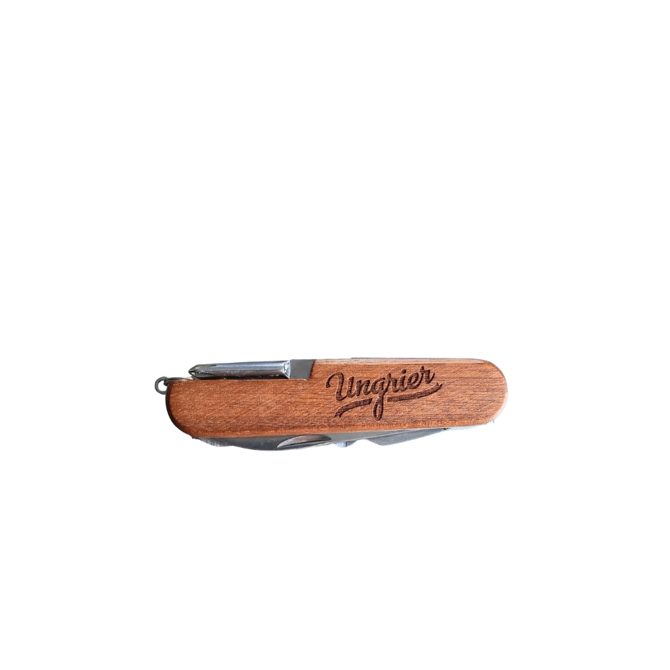Kapesní nůž s mnoha funkcemi, střenka z ušlechtilého dřeva, kovové části z nerezu, Gravírování můžeme nabídnout jak na čepel, tak na střenku nože