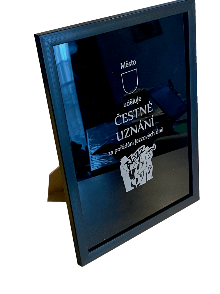 Plaketa tvořená černým rámečkem ve kterém je umístěn speciální černý plast, působením laseru vzniká působivý reliéfní efekt. Velikost 295 x 210 mm